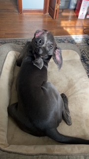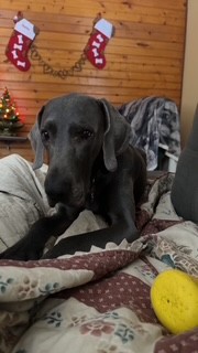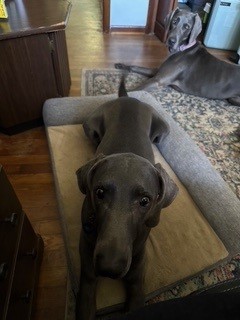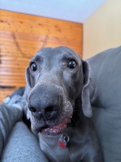 Hunter is an almost 6-year-old blue Weimaraner with a full tail. He’s currently in Madison Ohio waiting to meet his new family. This handsome guy is equal parts snuggler and sunbather—he’s perfectly happy curling up on the couch with you or soaking up rays in the backyard.