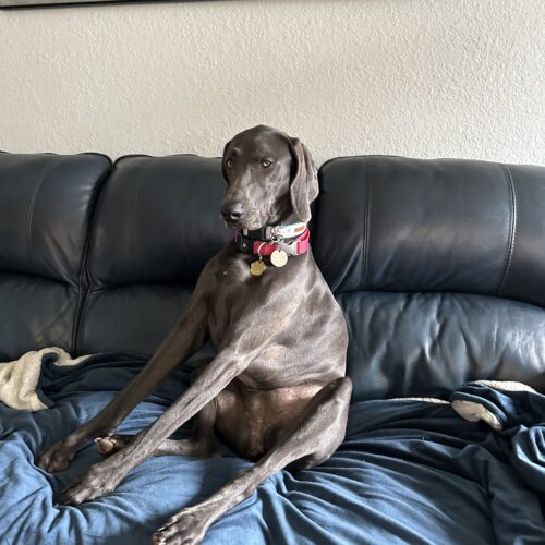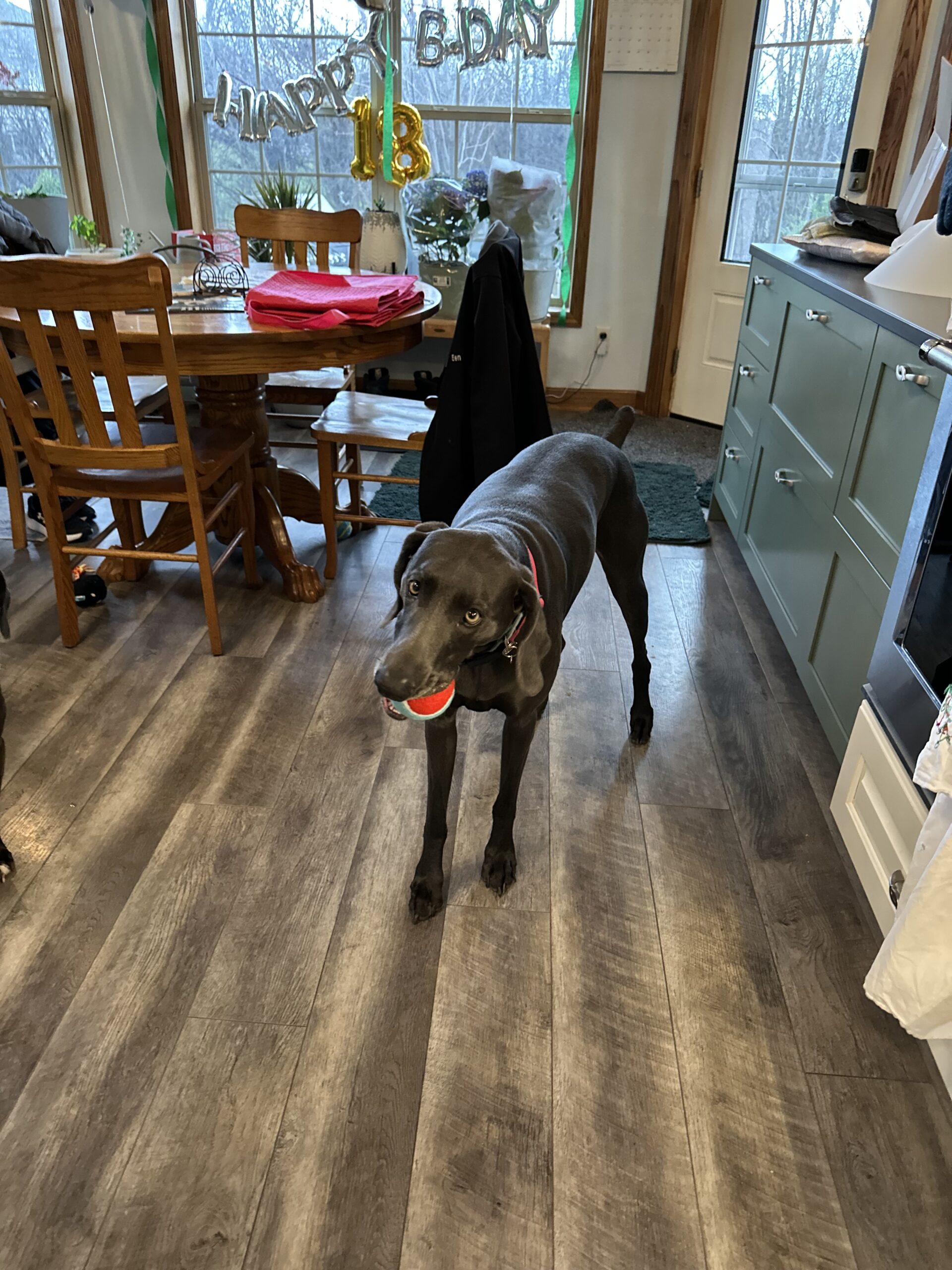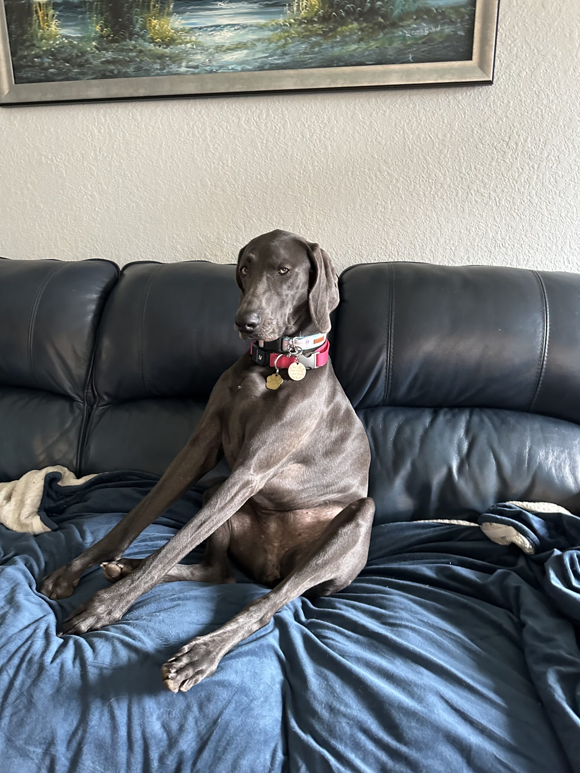 Luna is a beautiful 5-year-old silver blue Weimaraner with a spunky, playful personality that lights up every room she enters. She loves to stay active—whether it’s going for walks, playing with her favorite toys, or chasing after squirrels and other backyard wildlife. Luna is also a big fan of the outdoors and enjoys swimming whenever she gets the chance.