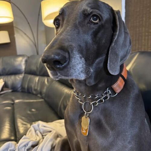 Lola is an 7-year-old Blue Weimaraner with a heart as big as her soulful eyes. This sweet girl is the definition of mild-mannered and gets along beautifully with her Weim foster sister. Whether it’s a leisurely stroll around the neighborhood or a spontaneous beach trip (which she loved), Lola is always up for an adventure.