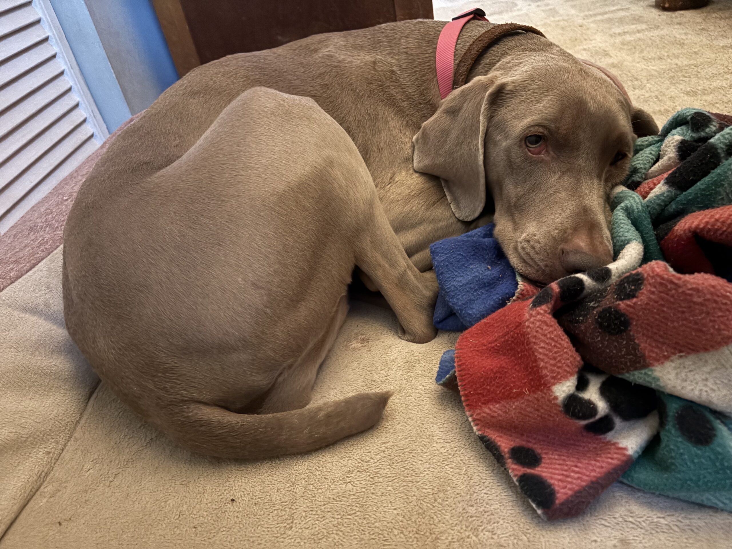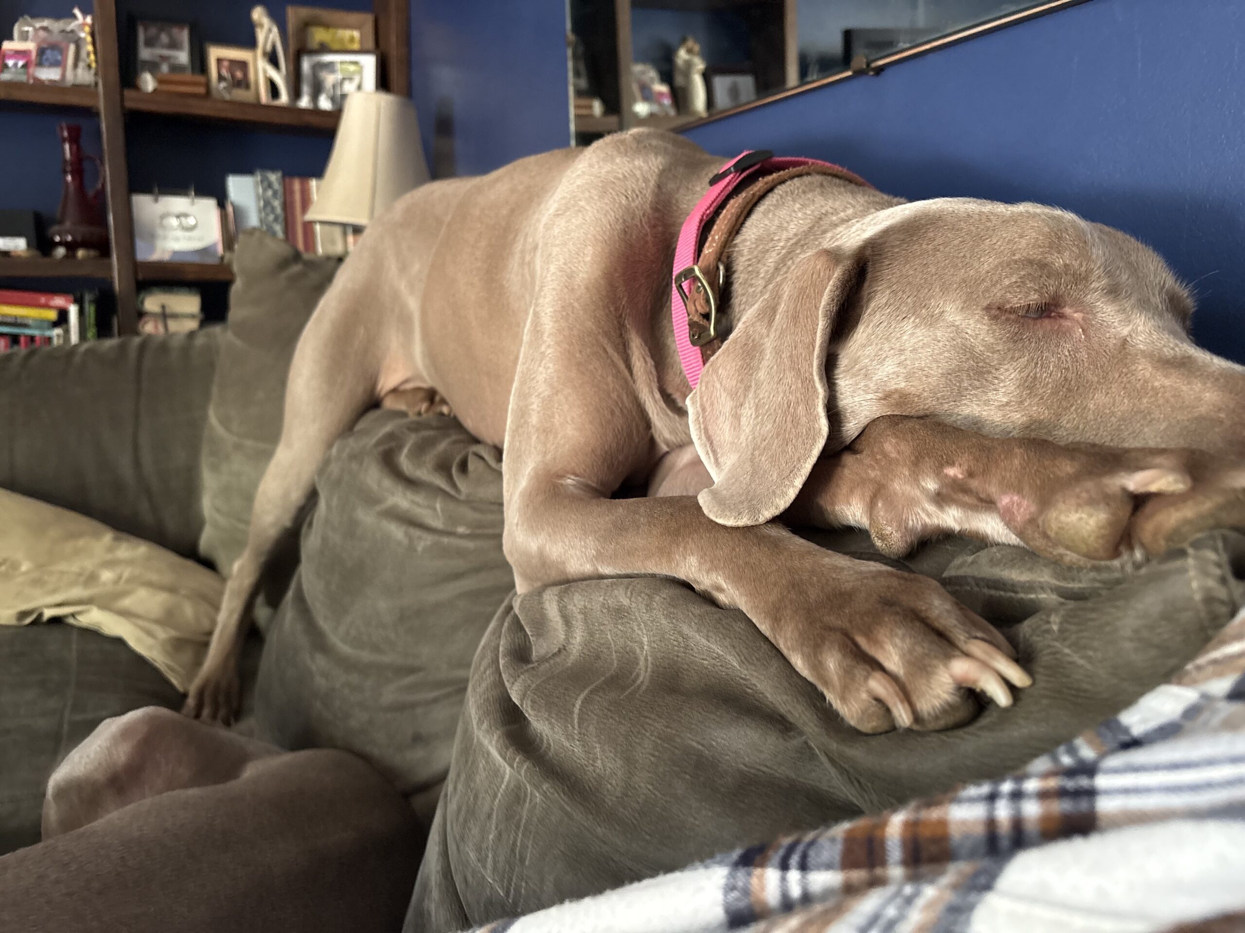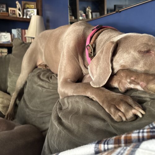 Winnie is a 5-year-old silver female Weimaraner who’s all about chill vibes and quiet companionship. She’s a low-maintenance girl who enjoys Netflix and relaxing in her own space, and she’s not one to get excited about much—whether it’s people coming in the door or a new adventure, Winnie stays cool and calm.